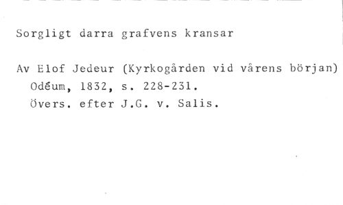 Sorgligt darra grafvens kransar //// Av Elof Jedeur (Kyrkogården vid vårens början) Od6um, 1832, s. 228-231. Övers. efter J.G. v. Salis.