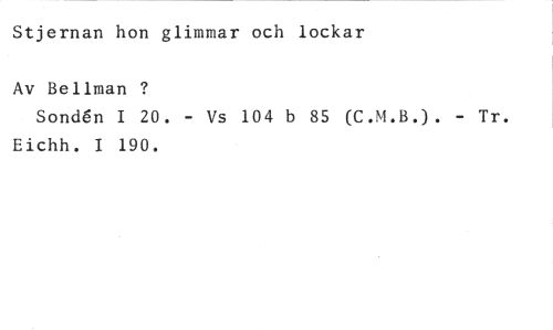 Stjernan hon glimmar och lockar //// Av Bellman ? //// Sond6n I 20. - Vs 104 b 85 (C.M.B.). - Tr. Eichh. I 190.