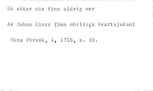 Så såter vän fins aldrig mer //// Av Johan Elers (Den obilliga Svartsjukan) Mina försök, 1, 1755, s. 10.