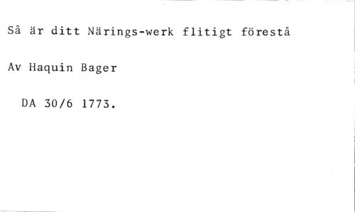 Så är ditt Närings-werk flitigt förestå Av Haquin Bager //// DA 30/6 1773.