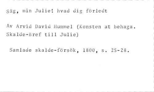 säg, min Julie! hvad dig förledt //// Av Arvid David Hummel (Konsten at behaga. Skalde-Bref till Julie) //// Samlade skalde-försök, 1800, s. 25-28.