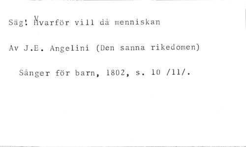 Säg: varför vill då menniskan //// Av J.E. Angelini (Den sanna rikedomen) Sånger för barn, 1802, s. 10 /11/.