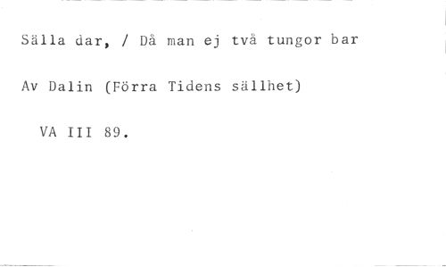 Sälla dar, / Då man ej två tungor bar Av Dalin (Förra Tidens sällhet) VA III 89.