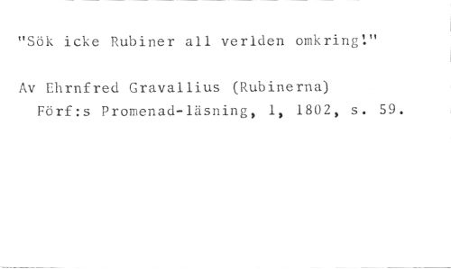 Sök icke Rubiner all verlden omkring: //// Av Ehrnfred Gravallius (Rubinerna) //// Förf:s Promenad-läsning, 1, 1802, s. 59.