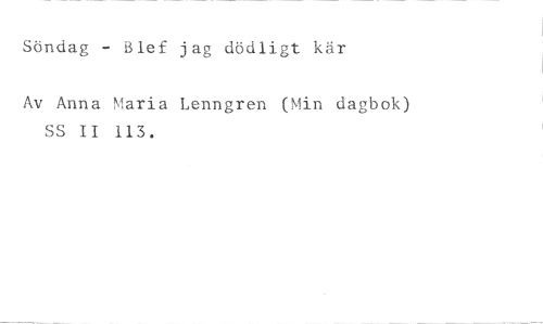 Söndag - Blef jag dödligt kär //// Av Anna Maria Lenngren (Min dagbok) SS II 113.