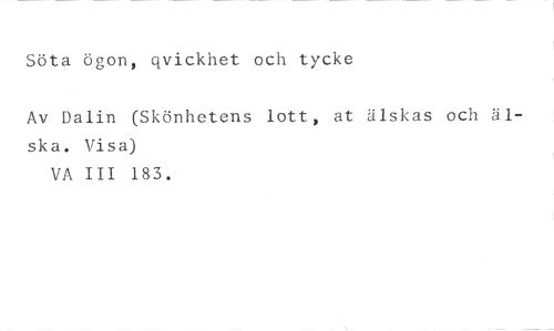 Söta ögon, qvickhet och tycke //// Av Dalin (Skönhetens lott, at älskas och älska. Visa) //// VA III 183.
