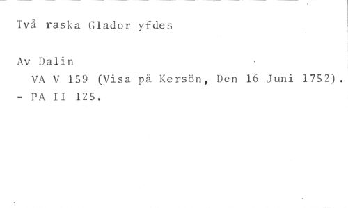 Två raska Glador yfdes //// Av Dalin //// VA V 159 (Visa på Kersön, Den 16 Juni 1752). - PA II 125.