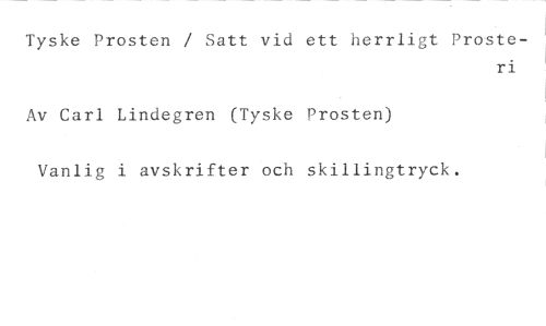 Tyske Prosten / Satt vid ett herrligt Proste- //// ri //// Av Carl Lindegren (Tyske Prosten) //// Vanlig i avskrifter och skillingtryck.