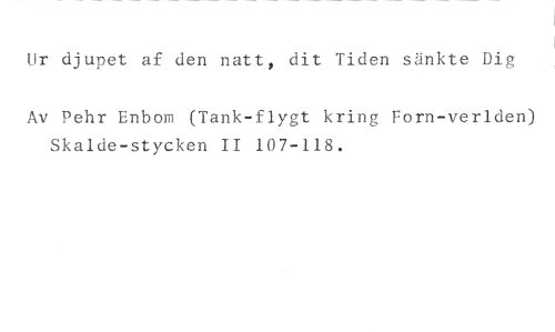 Ur djupet af den natt, dit Tiden sänkte Dig //// Av Pehr Enbom (Tank-flygt kring Forn-verlden) Skalde-stycken II 107-118.