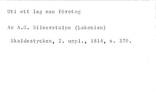 Uti ett lag man företog //// Av A.G. Silverstolpe (Lakonism) Skaldestycken, 2. uppl., 1814, s. 370.