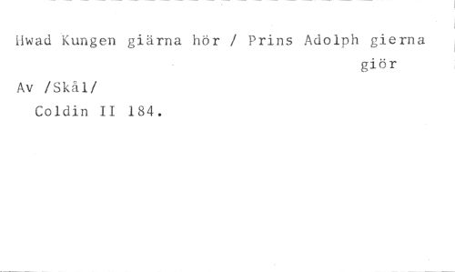 liwad Kungen giärna hör / Prins Adolph gierna //// giör //// Av /Skål //// /Coldin II 184.