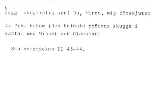 v //// Uvad obegriplig syn! Du, Minne, mig förskjuter //// Av Pehr Enbom (Den belönte poftens skugga i samtal med Minnet och Glömskan) //// Skalle-stycken Il 43-44.