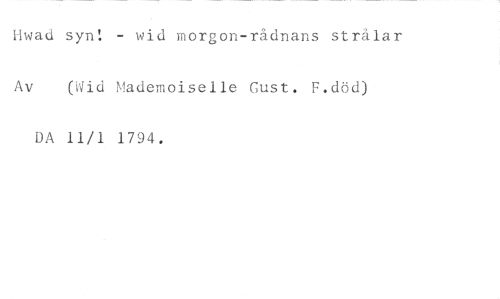 Hwad syn! - wid morgon-rådvans strålar //// Av (Wid Mademoiselle Cust. F.död) //// DA 11/1 1794.