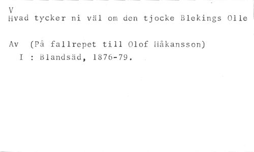 V //// Hvad tycker ni väl om den tjocke Blekings 011e //// Av (På fallrepet till Olof Håkansson) I : Blandsäd, 1876-79.
