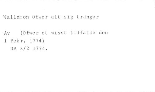 Wallemon öfwer alt sig tränger //// Av (Öfwer et wisst tilfälle den //// 1 Febr. 1774) DA 5/2 1774.