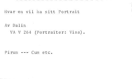 givar en vil ha sitt Portrait //// Av Dalin //// VA V 264 (Portraiter: Visa). //// Pirum --- Cum etc.