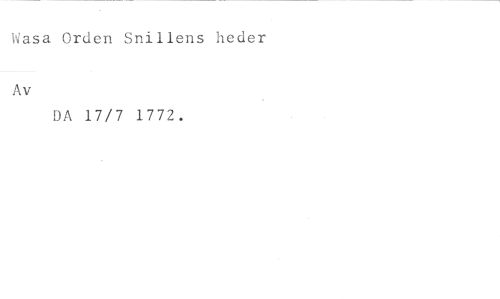 Wasa Orden Snillens heder //// Av //// DA 17/7 1772.
