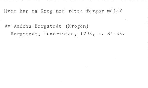 Hvem kan en Krog med rätta färgor måla? //// Av Anders Bergstedt (Krogen) //// Bergstedt, Humoristen, 1793, s. 34-35.