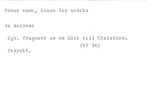 Venus sam, innom Sin snäcka //// Av Bellman //// Egh. fragment av en dikt till Christina. //// (Vf 36) //// Otryckt.