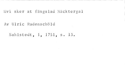 hvi sker at fängslad Näcktergal //// Av Ulric Rudenschöld //// Sahlstedt, 1, 1751, s. 13.