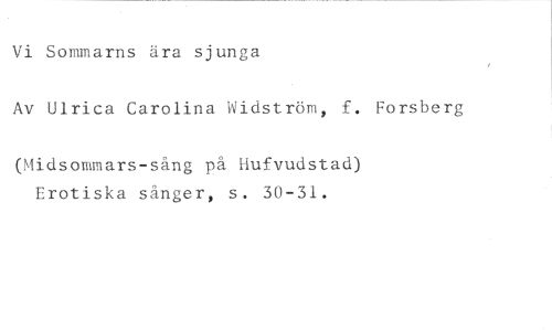 Vi Sommarns ära sjunga //// Av Ulrica Carolina Widström, f. Forsberg //// (Midsommars-sång på Hufvudstad) Erotiska sånger, s. 30-31.