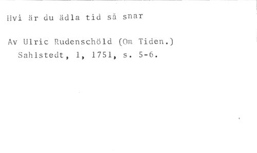 Uvi är du ädla tid så snar //// Av Ulric Rudenschöld (Om Tiden.) Sahlstedt, 1, 1751, s. 5-6.