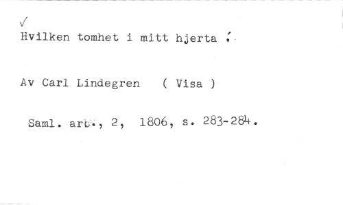 Hvilken tomhet i mitt hjerta //// Av Carl Lindegren ( Visa ) //// Saml. arL., 2, 1806, s. 283-284.