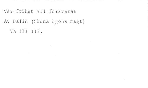 Vår frihet vii försvaras //// Av Dalin (Sköna ögons magt) VA III 112.