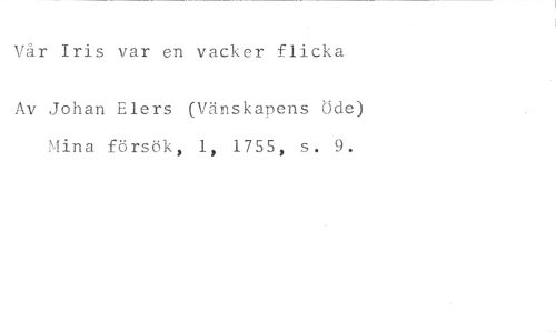 Vår Iris var en vacker flicka //// Av Johan Elers (Vänskapens Öde) Mina försök, 1, 1755, s. 9.