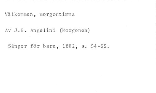Välkommen, morgontimma //// Av J.E. Angelini (Morgonen) Sånger för barn, 1802, s. 54-55.