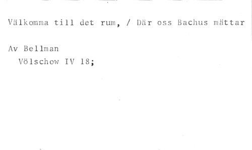 Välkomma till det rum, / Där oss Bachus mättar //// Av Bellman //// Völschow IV 18;