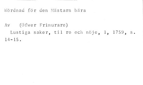 Wördnad för den Mästarn bära //// Av (Öfwer Frimurare) //// Lustiga saker, til ro och nöje, 1, 1759, s. 14-15.