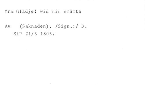 Yra Glädje! wid min smärta //// Av (Saknaden). /Sign.:/ B. //// StP 21/5 1805.