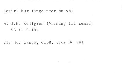 Zemir! hur länge tror du väl //// Av J.H. Kellgren (Varning til Zemir) SS II 9-10. //// Jfr Hur länge, Clo%, tror du väl