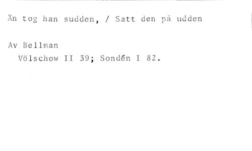 Än tog han sudden, / Satt den på udden //// Av Bellman //// Völschow II 39; Sondlin I 82.