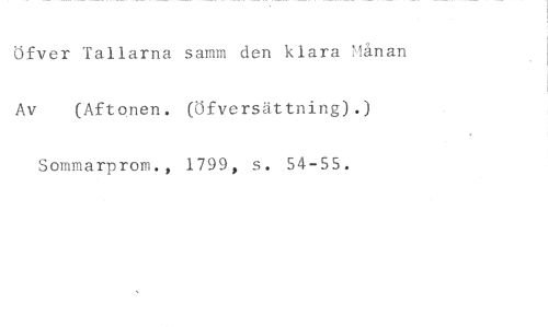 Öfver Tallarna samm den klara Månan //// Av (Aftonen. (Öfversättning).) //// Sommarprom., 1799, s. 54-55.